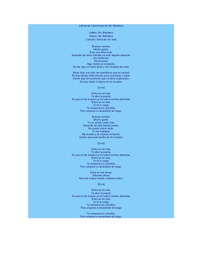 Letras De Canciones De Sin Bandera Musica Grabada Albumes